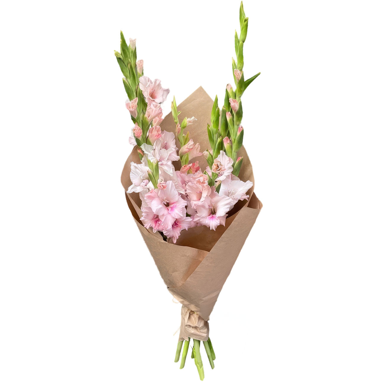Гладиолус розовый. Упаковка (лента, пленка, крафт, сетка, пленка матовая)
