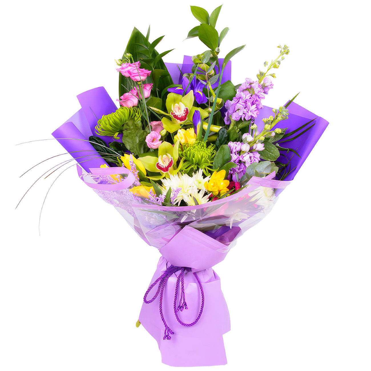 | Состав | Орхидеи, Фрезии, Хризантемы, Эустомы |