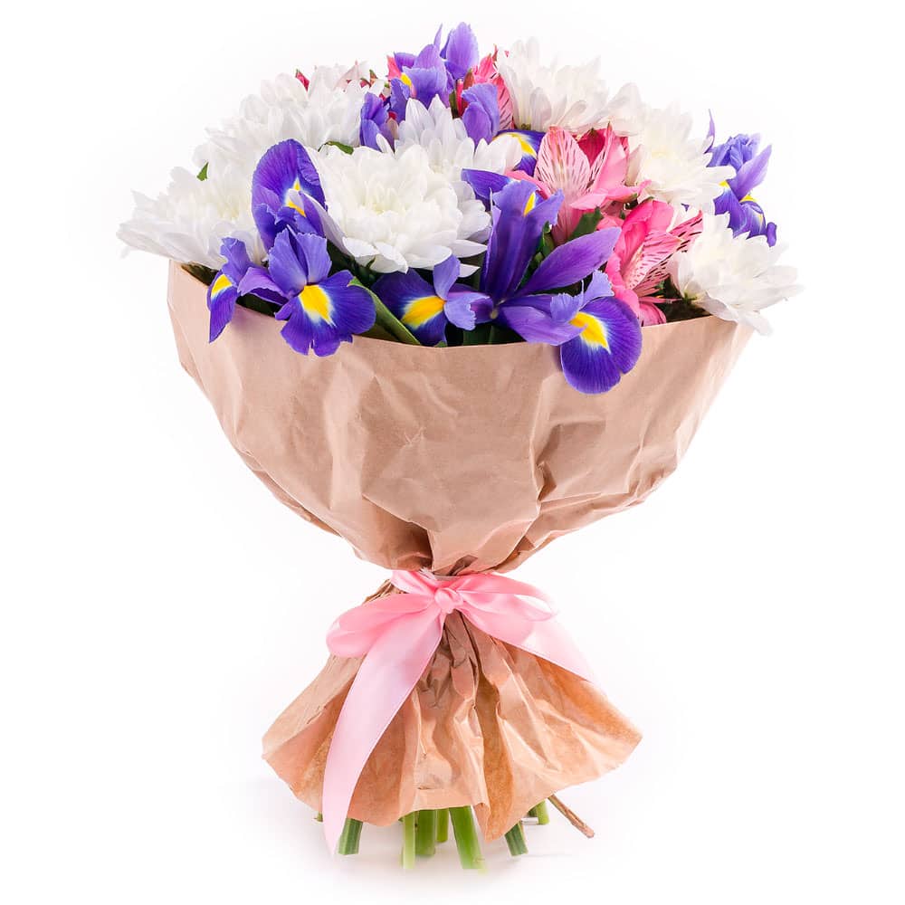 | Состав | Альстромерии, Ирисы, Хризантемы |