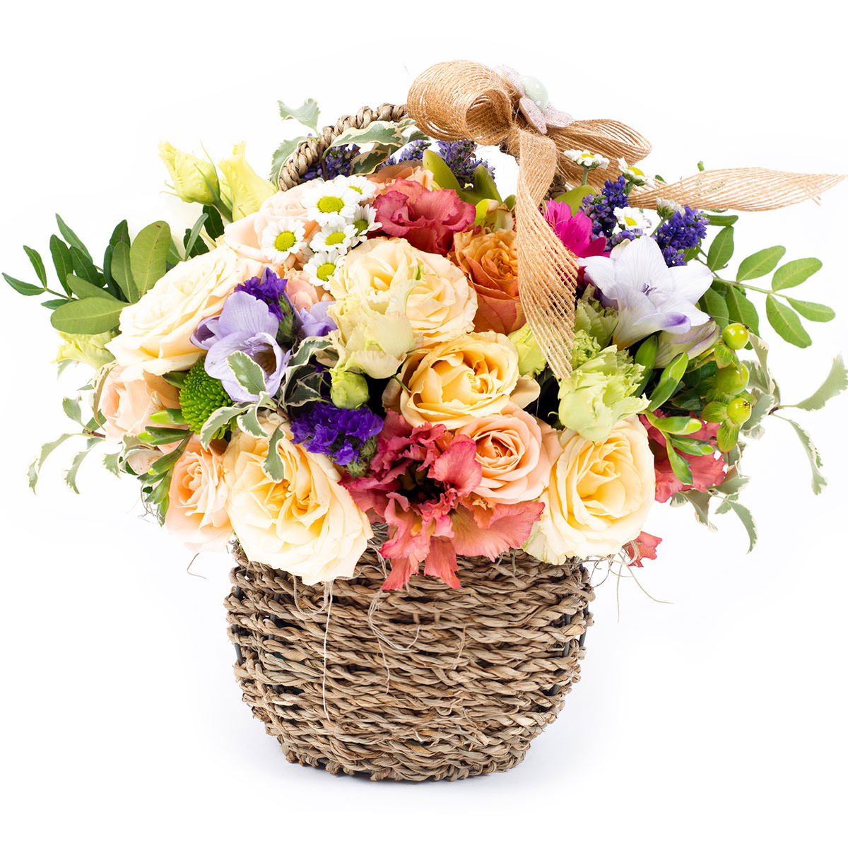 Корзина с цветами «Нектарные аккорды» с доставкой по г Макушино: вы можете купить букет в цветочном интернет-магазине «Флормания» по цене от 3890 руб.