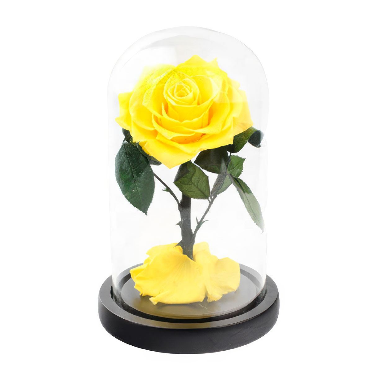 Стабилизированная вечная роза в колбе желтая.