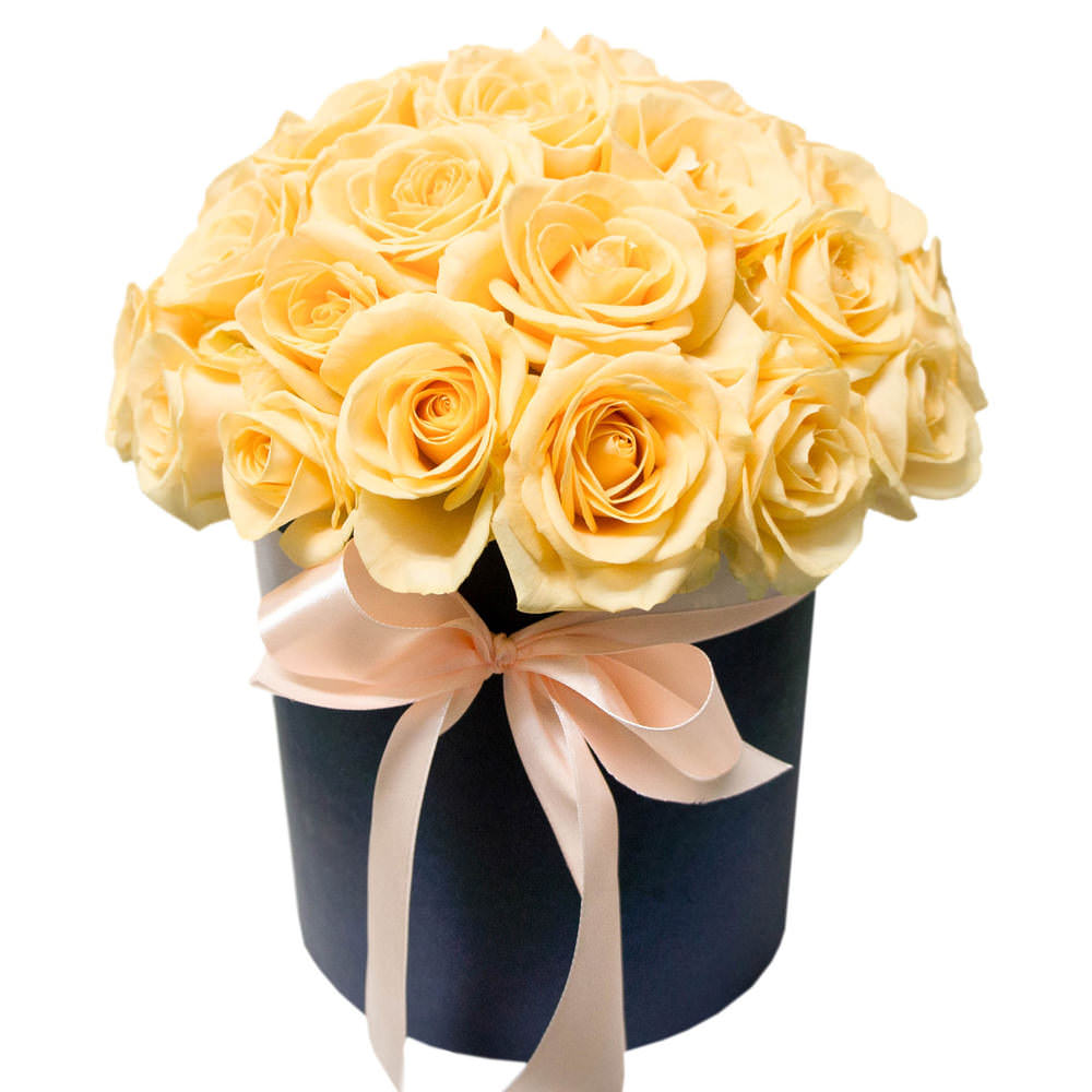 Цветы в коробке «Кремовые розы» с доставкой по г Макушино: вы можете купить букет в цветочном супермаркете «Флормания» по цене от 3390 руб.