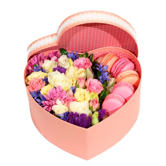 Цветы в коробке «С печеньем» с доставкой по г Макушино: вы можете купить букет в гипермаркете цветов «Флормания» по цене от 3390 руб.