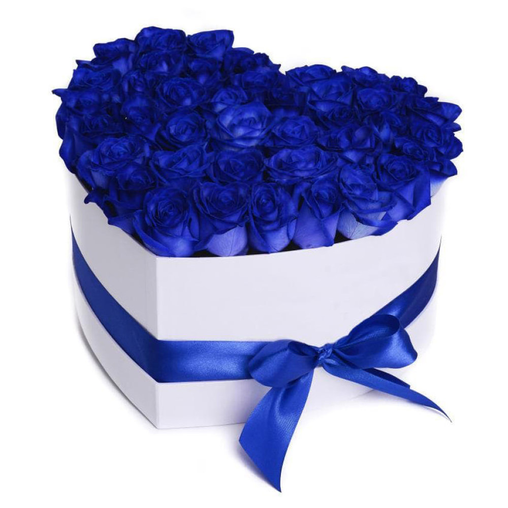 Цветы в коробке «Синее сердце» с доставкой по г Макушино: вы можете заказать букет в цветочном салоне «Флормания» по цене от 3390 руб.