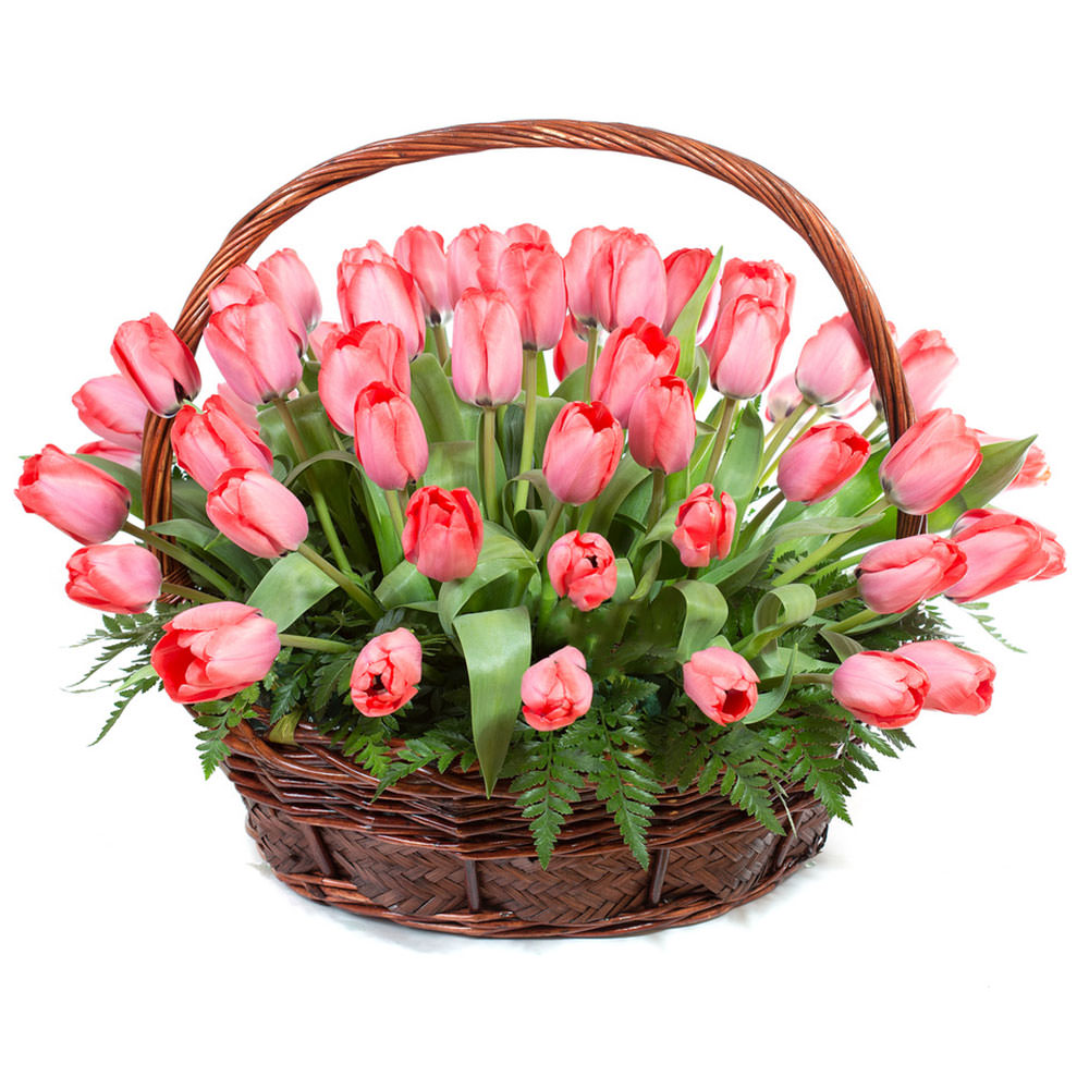 Цветы в корзинке «Розовые тюльпаны» с доставкой по г Макушино: вы можете купить букет в интернет-салоне цветов «Флормания» по цене от 3890 руб.